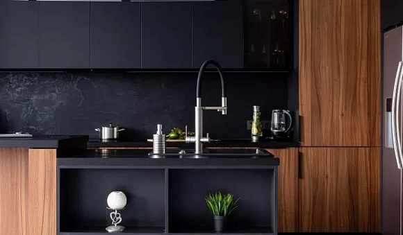 Многие не знают, но именно черная кухня является полным олицетворением изысканности, элегантности и торжественности одновременно. Благодаря использованию представленного уникального дизайнерского решения можно постоянно отвечать новым трендам моды – он никогда не теряется. Что самое главное, рассматриваемая цветовая палитра по праву считается отличным вариантом для экстравагантных личностей, обладающих невероятным тонким вкусом.