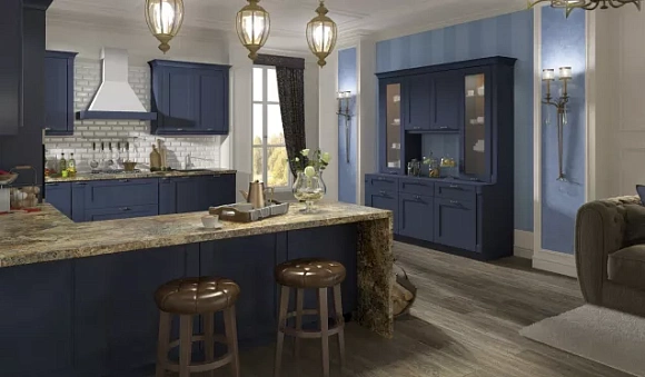 Выбор стиля кухонного гарнитура синего цвета