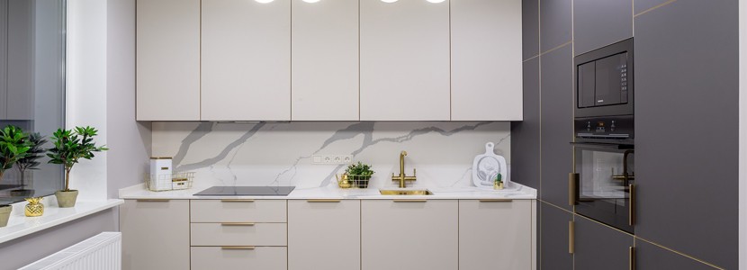 Приобрести квартиру на 31-м этаже высотки в центре Москвы? Голос «Радио Карнавал», Вера Шахова, успешно осуществила эту мечту! Но тут же появилась еще одна – со вкусом обставить новое жильё! Вера хотела интерьеры в стиле арт-деко, и тщательно подошла к их созданию. Особое внимание было уделено «сердцу» дома – кухне. Идеальный вариант нашелся в одном из салонов «Кухонный Двор». Теперь в доме Веры Шаховой красуется чёрно-белая «Ханна Стил» с фасадами «Extra Touch Matt» и великолепными «золотыми» кромками. Дизайн этой модели завораживает, а уникальные «бархатистые» поверхности дарят наслаждение от каждого прикосновения. Функциональная, эргономичная и красивая – «Ханна Стил» всегда на одной волне со своей известной хозяйкой!