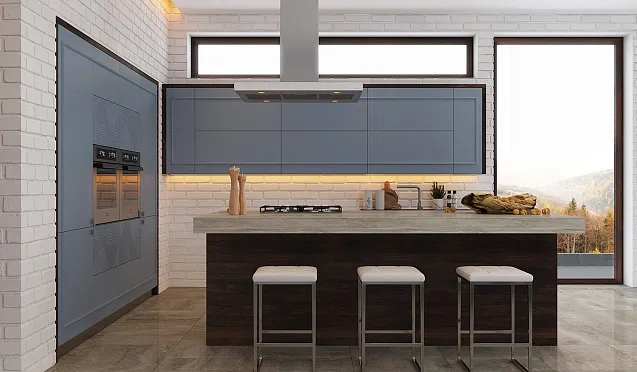 Самыми удобными считаются модульные кухонные гарнитуры, изготовленные на заказ. Когда можно индивидуально определиться с размерами и количеством шкафов, их формой и наполнением. С помощью модульной кухни можно визуально разделить просторное помещение на несколько зон. Для этого подходят модели с барными стойками и островами.