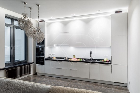 Хотите подчеркнуть свой безукоризненный вкус и придать помещению изысканный вид? Белые кухни будет смотреться особенно элегантно, если вы дополните ее черной или шоколадной столешницей и темной встраиваемой техникой.