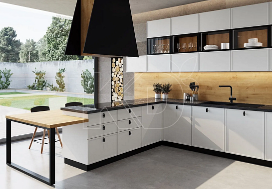 Белая кухня в сочетании с деревом