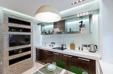 Современные тенденции приветствуют скрытые системы хранения, где посуда и принадлежности могут быть спрятаны за фасадами шкафов, что создает более аккуратный и минималистичный вид.