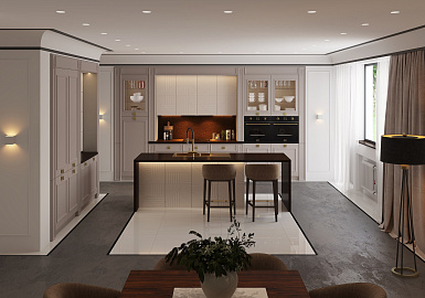 Ранее кухни были изолированными помещениями, отделенными от остальных зон жилого пространства. Сегодня же модно объединять кухню с гостиной или столовой, создавать открытую и просторную общую зону. Такой подход позволяет беспрепятственно общаться с семьей или гостями во время приготовления пищи.