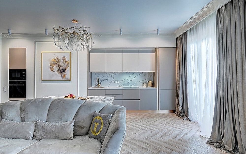 Лучше остановиться на приглушенном актуальном цвете. Вероятнее всего, он останется трендовым и через десятилетие. На сегодняшний день в дизайне чаще всего используют такие оттенки, как молочный, бежевый, серый, пыльно-розовый, нежно-голубой и другие.