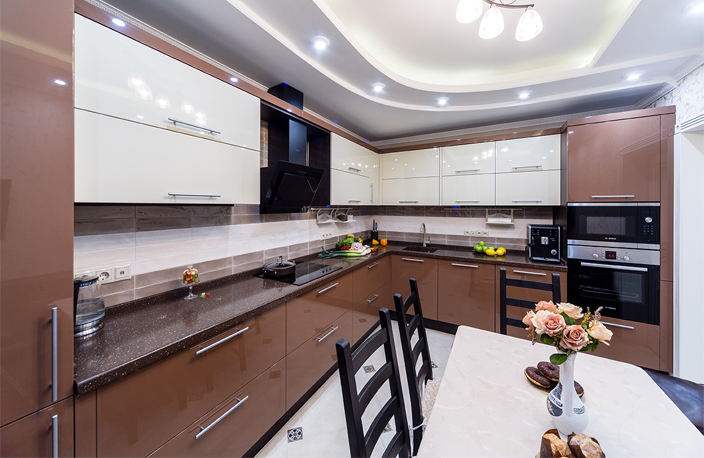 Дизайн кухни в бело-коричневых тонах