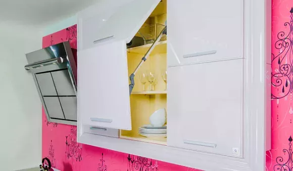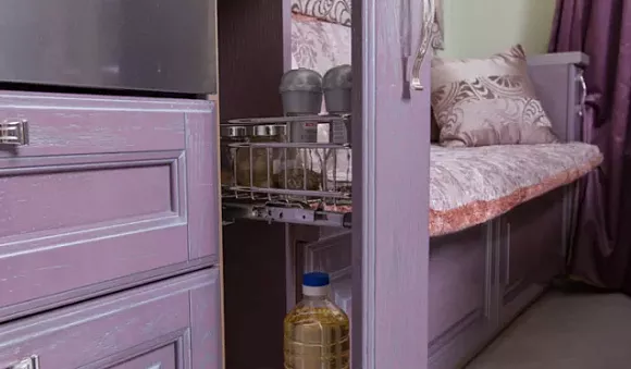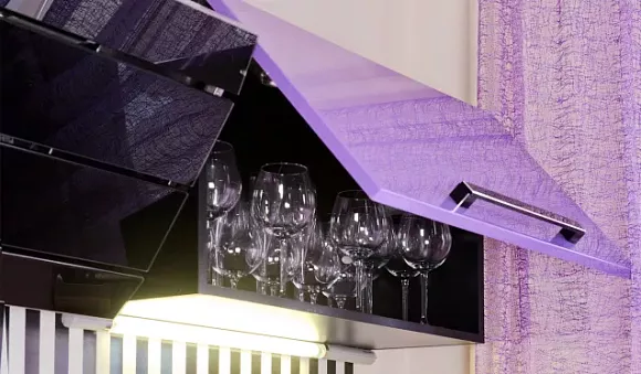 Меблировка фиолетового кухонного гарнитура