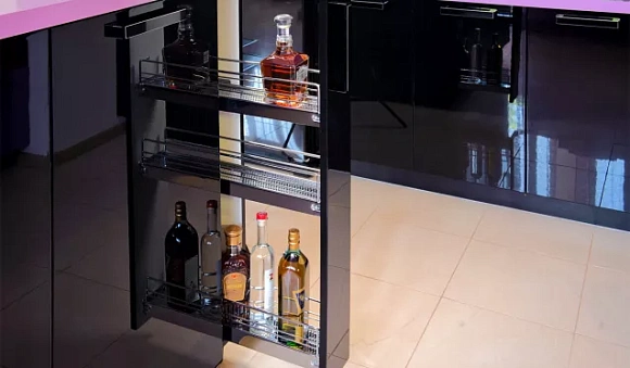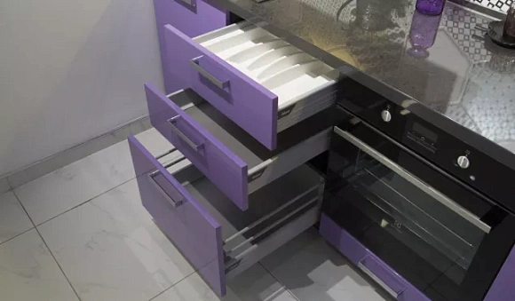 Рассматриваемые кухни фиолетовых цветов в каталоге кухонь на сайте изготавливаются на специализированном современном оборудовании с использованием передовых технологий. Благодаря этому гарнитур отличается наличием: