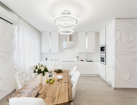 • Визуальное расширение площади. Белые кухни такого типа отражают естественный свет, тем самым зрительно увеличивая пространство.