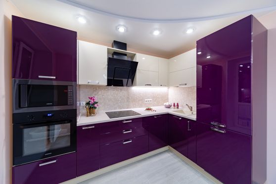 Выбирая цвет кухни, следует обратить внимание на освещенность и оформление помещения. Если это светлая сторона дома, подойдут любые оттенки. В случае северного расположения помещения рекомендуется остановиться на светлых оттенках с добавлением светильников. Кроме того, будут отлично выглядеть поверхности, отражающие свет. В этом случае речь идет о глянцевой кухне.