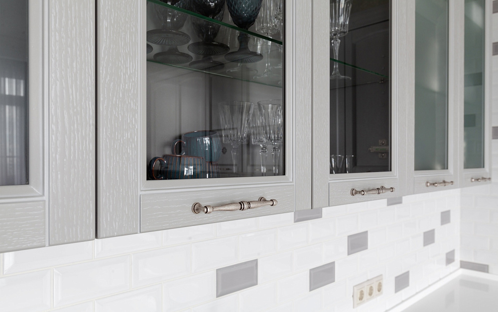 Так, для установки классической кухни потребуется большая площадь. Комплекты в стиле классика отличаются роскошной отделкой в виде позолоты, резьбы, лепнины, патины. Исходя из этого, для оформления стен и потолка следует использовать соответствующие элементы – многоярусные люстры, картины в резных рамах, дорогие обои с теснением и шелкографией. Напольное покрытие может быть каменным, деревянным или из искусственных материалов высокого качества.