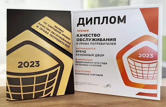 Компания Кухонный Двор по праву заслуживает звание качественного производителя и является обладателем многочисленных наград как российских (в том числе отраслевых), так и международных. В числе наград бренда – неоднократно полученная престижная премия «Качество обслуживания и права потребителей».