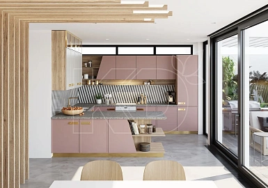 Например, светло-розовая мебель используется для создания романтического интерьера, наполненного воздухом и легкостью. Подчеркнуть красоту фасадов позволяют дополнительные элементы. Например, скульптуры и вазы на открытых полках.