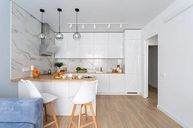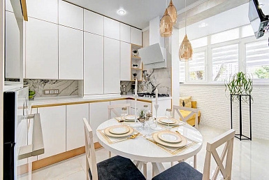 Для небольших помещениях белая кухня – настоящая находка, способная визуально увеличить пространство. Обеспечивается это за счет того, что светлые поверхности отражают солнечные лучи. Разбавить монотонность белоснежных фасадов можно с помощью ярких акцентов – фартука, рабочей поверхности и элементов декора.