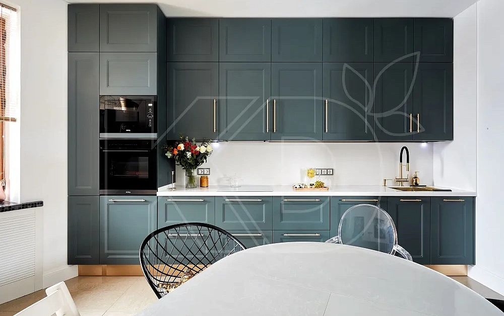 Для отделки фасадов таких кухонь применяется минималистичный декор в виде вставок, филенок, лаконичной резьбы. Геометрические формы сдержанные – прямоугольные или квадратные. Современный модерн предполагает отказ от излишеств и усложненных конструкций.