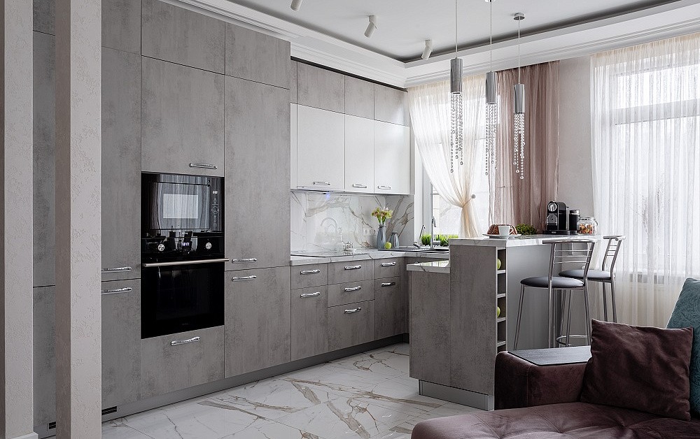 Важно, чтобы кухонный гарнитур был выполнен в актуальной стилистике, например, направлениях хай-тек, лофт или сканди.