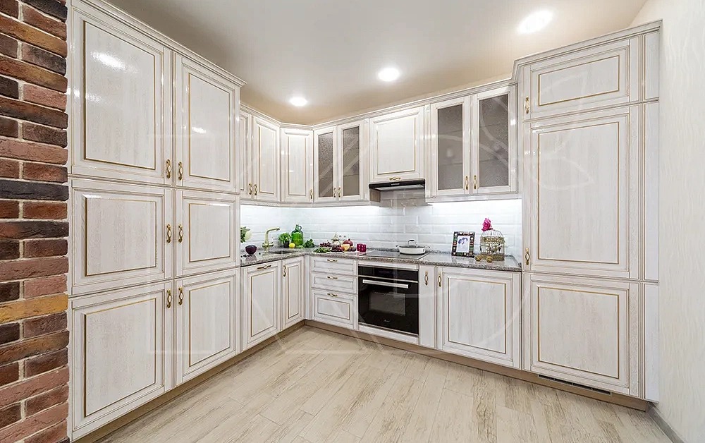 Красота дубовой фактуры полностью раскрывается в классическом стиле. Вся гамма природных коричневых оттенков передает строгость и роскошь классики. Планировка таких кухонь может быть прямой, угловой, параллельной или островной. Особенно эффектно классические модели смотрятся с гнутыми и радиусными фасадами. Подобные версии выглядят плавными и завершенными, добавляя в интерьер особый шик и элегантность.