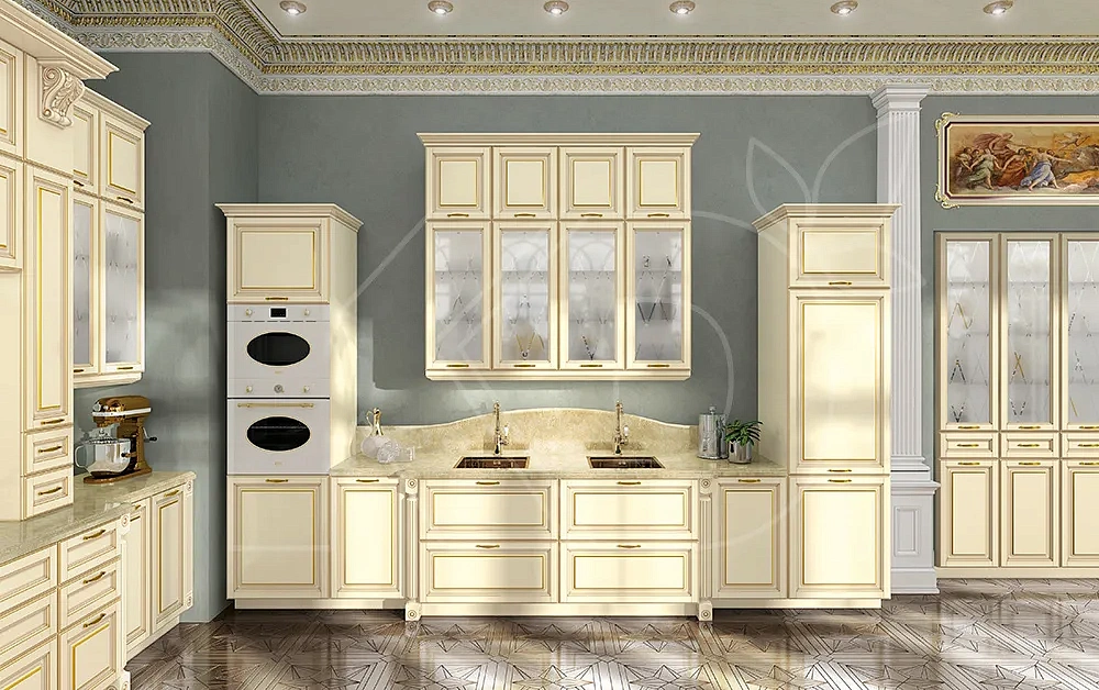 Бук применяется для создания гарнитуров в разных стилях – классика, неоклассика, модерн, лофт и минимализм. Из древесины такого типа формируют прямые и гнутые фасады.