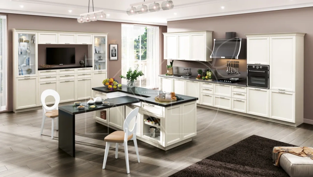 Компания «Кухонный двор» производит гарнитуры из натуральной древесины и качественного МДФ. У нас можно заказать кухню с фасадами любой расцветки. Наша продукция обладает следующими преимуществами:
