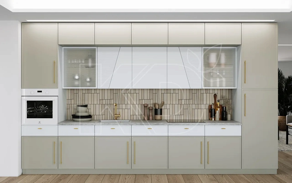 В бренда «Кухонный Двор» вы сможете заказать кухню по индивидуальным размерам. Мы учтем ваши пожелания относительно наполнения и дизайна комплекта. Для производства мебели наши специалисты используют только качественные материалы – массив дерева и МДФ.