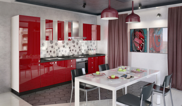 Не нужно выбирать фасады тоже красного цвета, потому что большое количество пестрого тона будет оказывать психологическое давление – долго находиться в таком помещении будет невозможно.