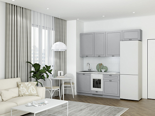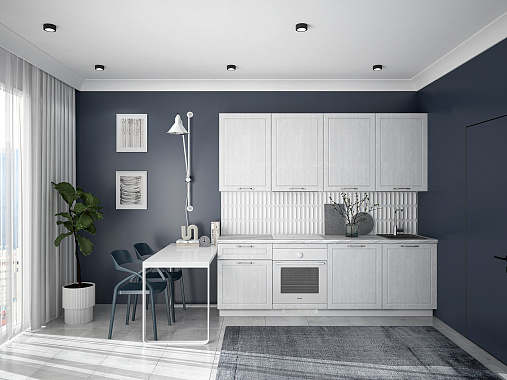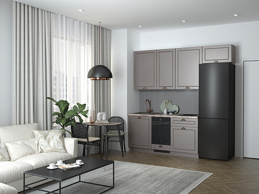 Кухня Лея — компактное готовое решение в классическом стиле, сочетающее элегантный дизайн и абсолютную функциональность. Изящные фасады с рамочной фрезеровкой придают ей нотку утончённости, а до мелочей продуманная конструкция делает её идеальной для небольшого помещения, в котором каждый сантиметр должен быть полезным.