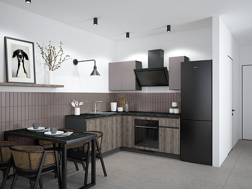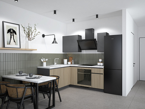 Вдохновлена роскошью, исполнена в минимализме. Кухня-сет Уна — готовое решение для тех, у кого нет времени на индивидуальный проект. Компактная L-образная планировка гарантирует 100% удобство в использовании, а сочетание лаконичных фасадов и строгих акцентов задаёт современный настрой всему интерьеру. Строгий дизайн, продуманные детали и удобные системы хранения делают эту кухню идеальным выбором для тех, кто превыше всего ценит комфорт и эстетику.