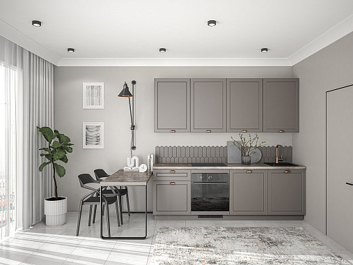Минимализм, в котором есть всё. Прямая кухня Уна — стильное решение без лишнего. Чёткая геометрия, гладкие фасады и сдержанные акценты создают современный образ. Продуманные зоны хранения — максимум комфорта в минимуме пространства. Идеальный вариант для тех, кто выбирает функциональность и чистый дизайн.