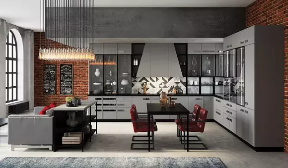 Богатая палитра. Для производства кухонных гарнитуров используются все оттенки серого. Графитовые и пепельные версии подходят для просторных комнат с хорошим освещением. Модели дымчатого и стального тона можно интегрировать в небольшие пространства.