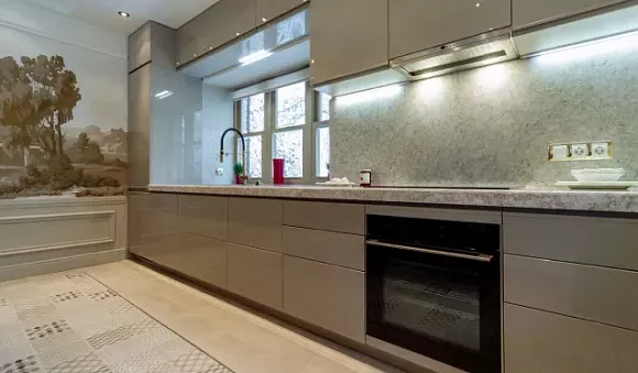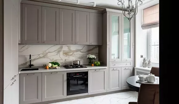 Отделка серого кухонного гарнитура
