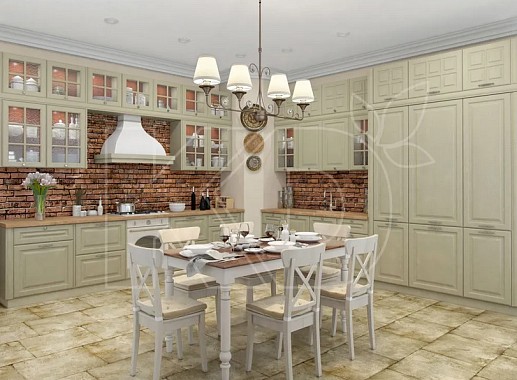 Фасады покрывают как матовой, так и глянцевой эмалью, украшают замысловатой фрезеровкой и патиной различных оттенков. Для классики характерно использование разнообразных декоративных элементов: колонн и балюстрад, витражей из матированного стекла, точеных балясин и резных карнизов, лепнины, инсталляций из сверкающих кристаллов Swarovski. Подчеркнуть благородство интерьера поможет столешница из натурального или искусственного камня, стилизованные под старину светильники, картины в позолоченных рамах. При выборе техники желательно отдавать предпочтение полновстраиваемым моделям, целиком скрытым за мебельными фасадами – они помогут сохранить безупречную гармонию в помещении.