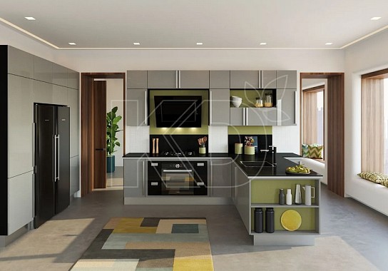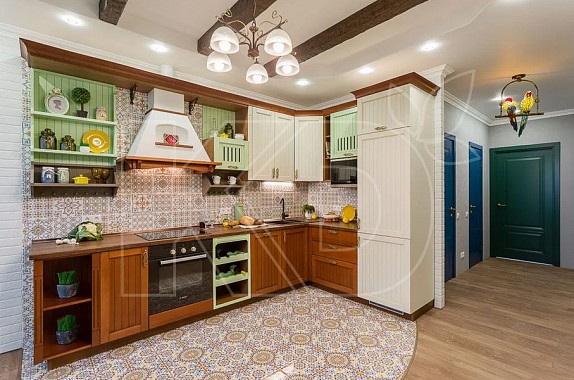 Наполнить уютом просторное помещение и создать в нем камерную обстановку поможет мебель насыщенных тонов: пихтовая, оливковая, малахитовая. Если окна квартиры выходят на северную сторону, добавить недостающее тепло поможет кухня, часть фасадов которой окрашены в жизнерадостный желтый или оранжевый оттенок. Для помещений с окнами на юг хорошим выбором станут нефритовые, мятные, серо-зеленые гарнитуры, создающие атмосферу приятной прохлады.