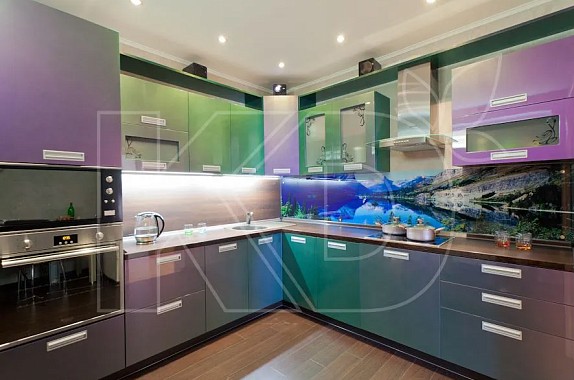 Зеленая угловая кухня может иметь совершенно разный вид. Для небольших помещений подойдут варианты светлых тонов: мятные или нежно-салатовые. Удачным выбором станет гарнитур, в котором часть фасадов выполнена в белом или бежевом оттенке. Он зрительно расширит границы, создавая иллюзию свободы. Усилить эффект можно, купив кухню с отражающими свет ультраглянцевыми фасадами.