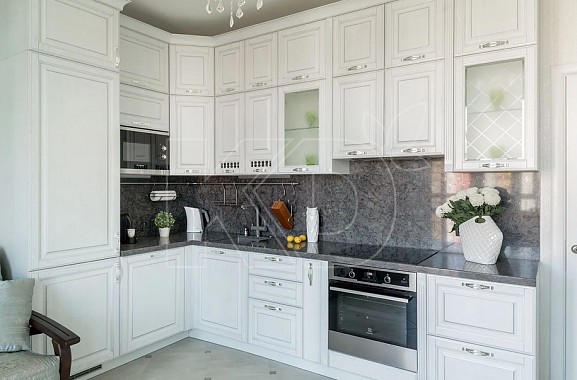 Угловые белые классические кухни