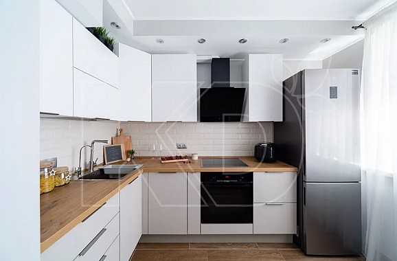 Кухня г-образной планировки подходит абсолютно для любых помещений. Чаще всего такой мебели отдают предпочтении владельцы небольших квартир с маленькими комнатами. Угловая кухонная мебель отлично подходит для помещений небольшой площади, помогает экономить пространство. Такая кухня в белом цвете — это истинный показатель классики, она смотрится очень привлекательно и роскошно, способна подчеркнуть наличие вкуса у хозяев. Помимо всего прочего, белый цвет отлично визуально расширяет пространство, поэтому это оптимальный вариант для маленьких комнат.