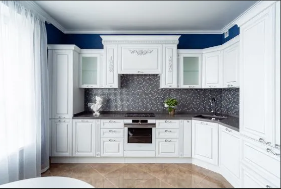 • Универсальность. Угловые кухни подходят как для просторных, так и компактных интерьеров. Нужно лишь определиться с габаритами и числом желаемых модулей. Если помещение небольшое, можно использовать двойной ряд верхних модулей, что позволит разместить всю необходимую утварь и продукты даже для большой семьи.