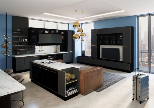 Глянцевые и  золотые кухни выглядят необычно и подходят для интерьеров в стиле арт-деко, модерн, неоклассика. Как правило, их выбирают креативные люди, умеющие мыслить творчески.