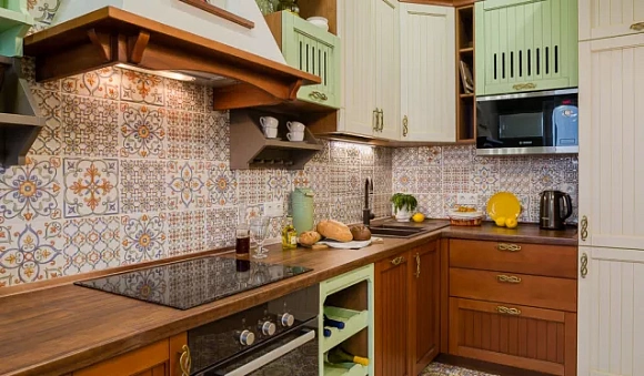 Если становится понятно, что зеленый кухонный гарнитур выглядит слишком аляповато, можно скомбинировать его с другими оттенками. Отличными вариантами считаются такие тона, как желтый, коричневый, синий. В качестве альтернативного решения выбираются и прочие методы. Среди них принято выделять: