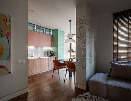 Зелено-голубая палитра подойдет гарнитурам многих стилей: