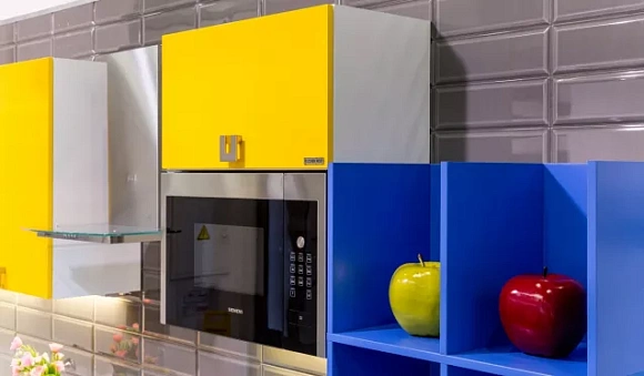 Так как желтый – это самодостаточный цвет, его не рекомендуется использовать в качестве фона. Лучше использовать данный тон для отделки фасадов или кухонного фартука.