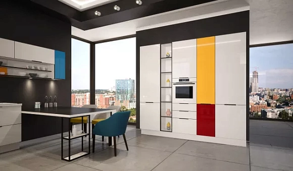 Для небольших пространств идеальным вариантом станет комбинация белого с лимонным или соломенным тоном. Благодаря ей комната будет выглядеть более просторной и свободной. К тому же желтая кухня будет хорошо смотреться на фоне белоснежных стен. Чтобы подобный дизайн выглядел завершенным, можно использовать занавески или текстиль оного цвета с фасадами.