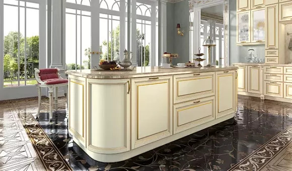 Наиболее распространенный вариант – классическая кухня золотого цвета. Такая версия выглядит роскошно, дорого и гармонично. Оттенок драгоценного металла в полной мере раскрывает красоту и благородство классики.