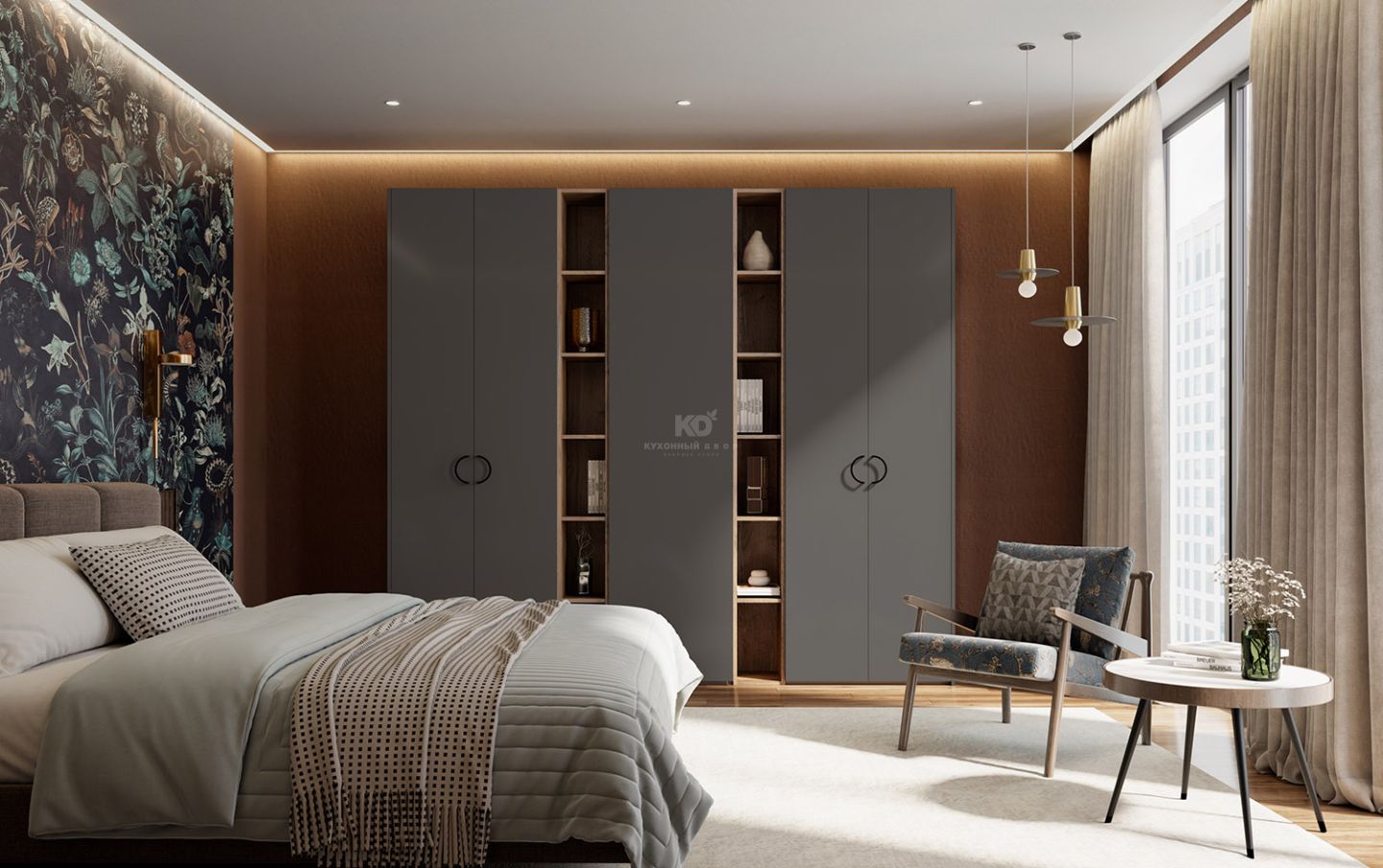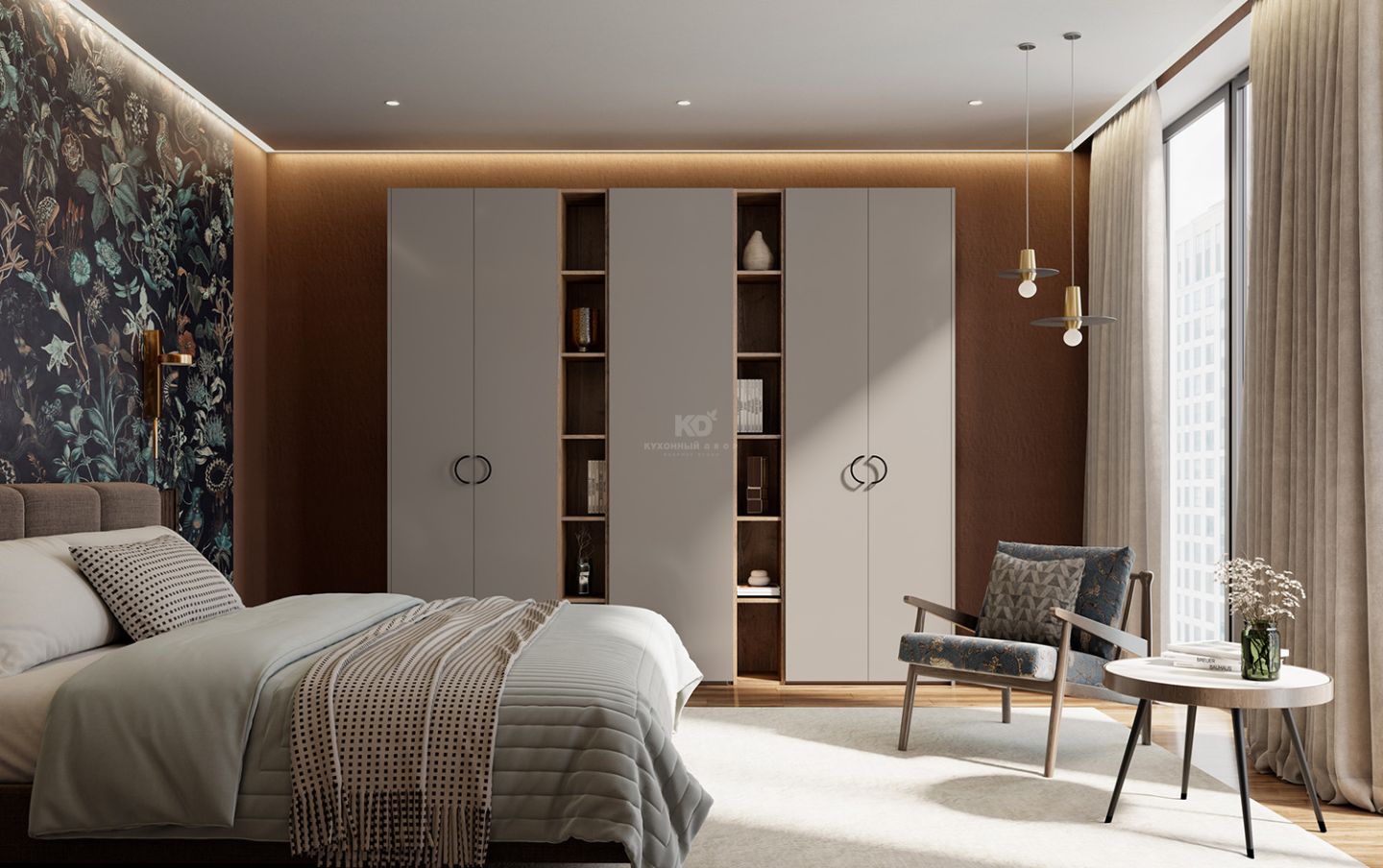 Шкаф Мира в интерьере спальни — это не просто система хранения, это архитектурная плоскость, которая диктует настроение всему пространству. Здесь монументальность встречается с предельной нежностью, а строгая геометрия растворяется в мягких световых градиентах.