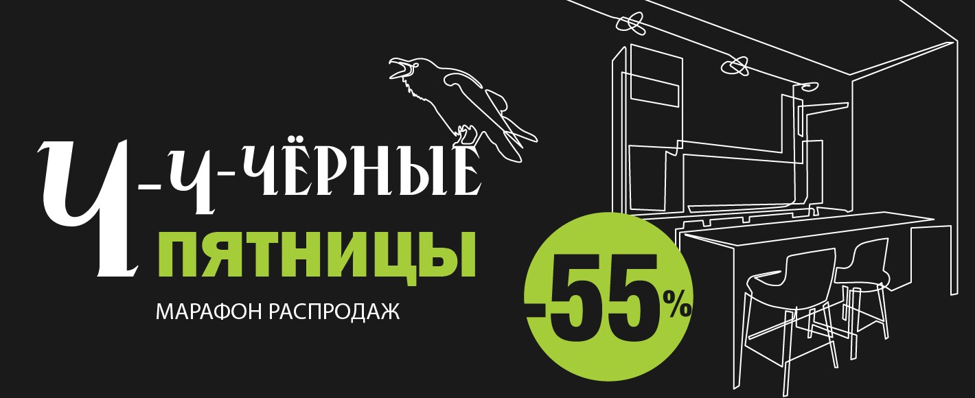 Вы просили, и мы продолжаем самую долгожданную распродажу в году — Чёрную пятницу. Скидки до 55% на кухни* по индивидуальному заказу и из сертифицированных материалов. Но рано или поздно Чёрная пятница закончится. Поэтому пора действовать: выберите свою кухню сегодня и сэкономьте по максимуму завтра.